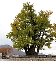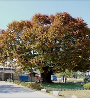 나무는 개울로 돌출해 있어 개울 가운데서 자라고 있다. 개울이 넓어지면서 점점 개울 쪽으로 들어간 것 같다.홍수가 나면 이 나무들도 위험해 보인다. 세 나무 중 하나는 줄기가 부러져서 볼 품 없게 되었다. 좀더 안전한 관리가 필요해 보인다.