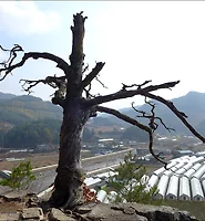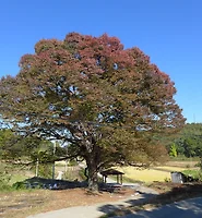 나무는 가지가 많이 퍼져서 사방 어디에서 보더라도 부채꼴 모양이다. 마치 공작이 활짝 날개를 편 것 같다. 안내문에는 키가 19m, 나이는 200살로 나와 있다. 여느 보호수에 비해 나이는 적지만 절 입구에서 가장 먼저 중생을 맞아주는, 부처의 마음을 닮은 나무다.