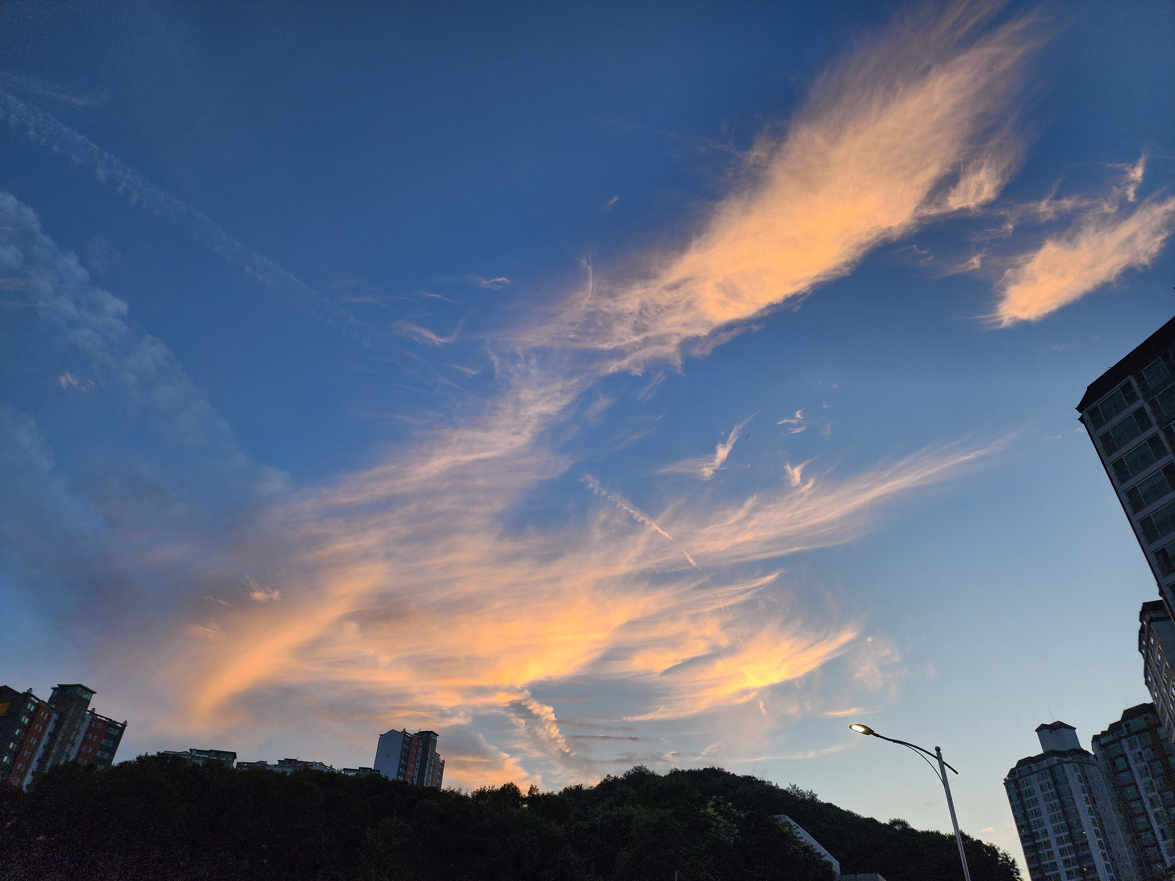 집으로 돌아오는 길, 서쪽 하늘에 걸린 저녁 노을이 고왔다. 총 16,300보를 걸은 날이었다.