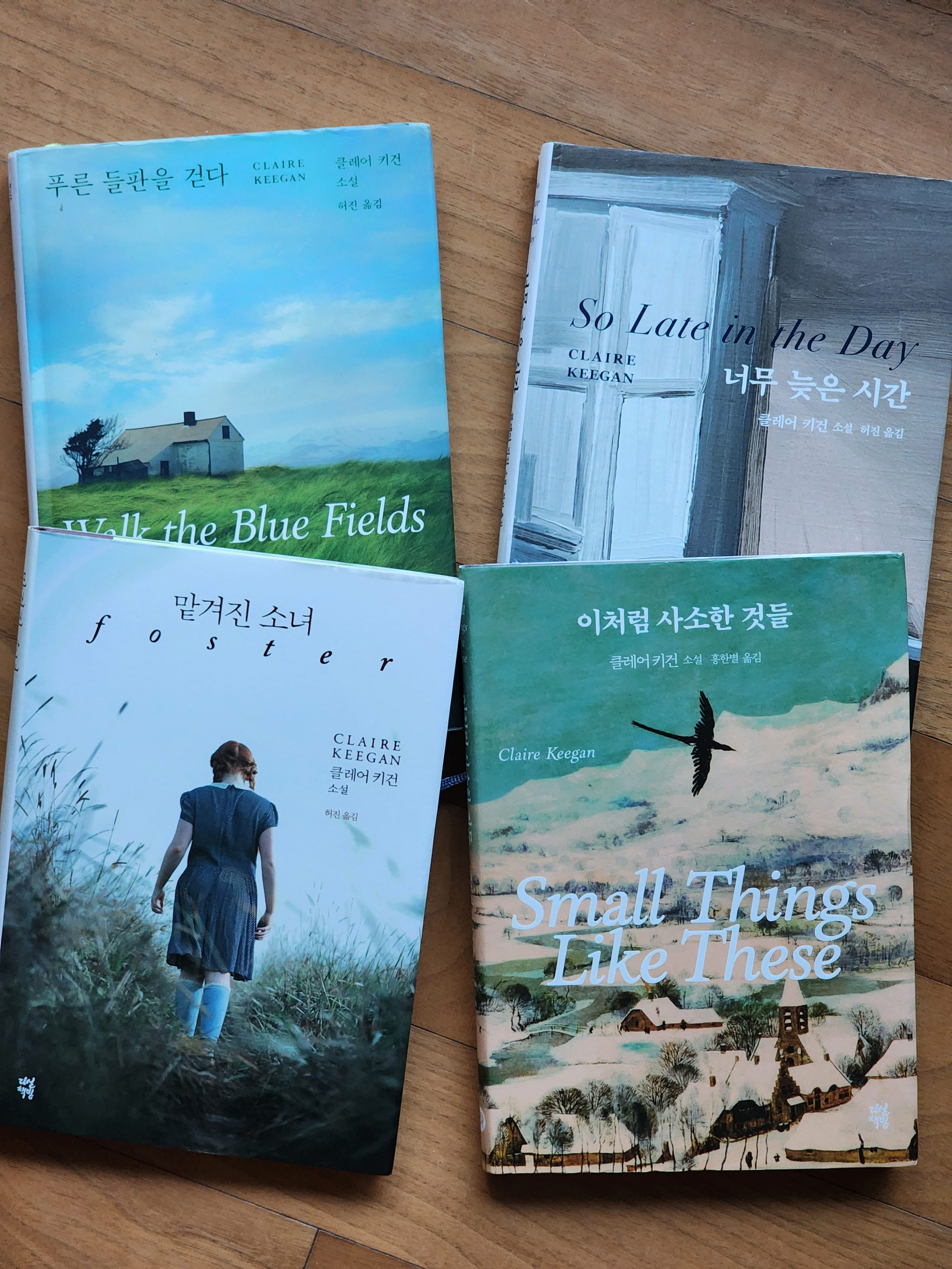키건은 평생 다섯 권의 책을 출판했다는데 우리나라에는 네 권이 번역되어 있다. 두 권은 서점에서 샀고, 두 권은 도서관에서 빌려 모두 읽었다. <이처럼 사소한 것들> <맡겨진 소녀> <푸른 들판을 걷다> <너무 늦은 시간>으로 전부 단편들이다. 앞의 두 권은 하나의 단편이고, 뒤의 두 권은 여러 작품의 단편이 모여 있다. 책들은 100 페이지를 살짝 넘을 정도로 얇다.