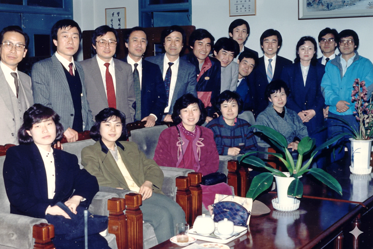 이 사진은 1988년 J여중에 있을 때 동료 교사들과 찍은 것이다. 그해에 전출하는 교사들이 마지막으로 교장실에 모여 차를 나누고 헤어지기 전에 기념으로 남겼다. 40년 전이지만 하나하나의 얼굴에서 그때의 추억이 희미하게 새롭다. 몇을 제외하고는 이름조차 기억나지 않지만.