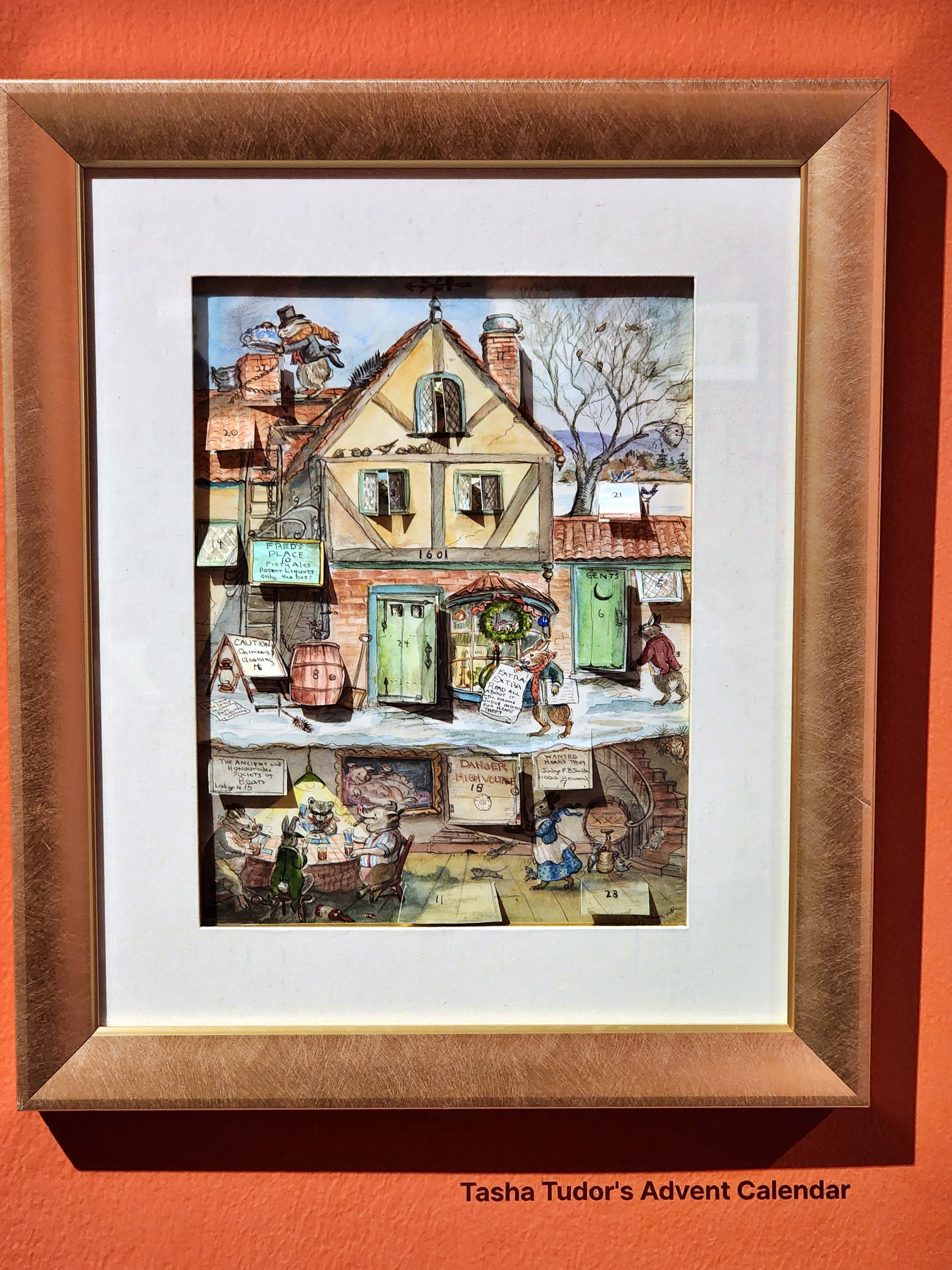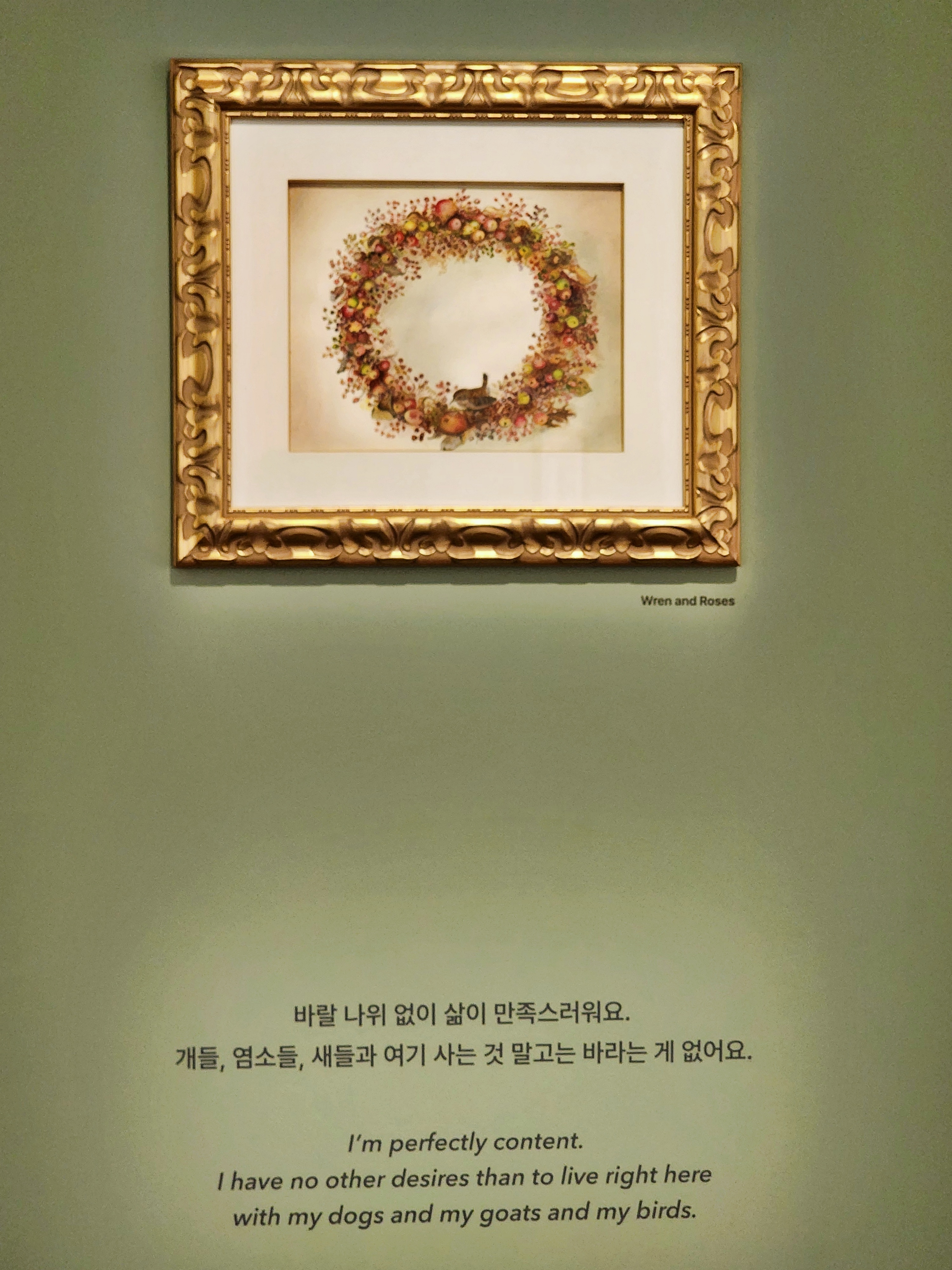 전시는 타샤 튜더가 그린 그림 중심으로 되어 있고 그녀가 쓴 그림책 원본도 볼 수 있다. 전체적인 느낌은 따스함이다. 그녀를 소개하는 다큐멘터리 영상을 보면 정원의 꽃으로 둘러싸인 집은 소박하며 살림살이도 마찬가지다. 슬로 라이프로 행복을 누리는 자연주의자로서의 삶이 오롯이 느껴진다.