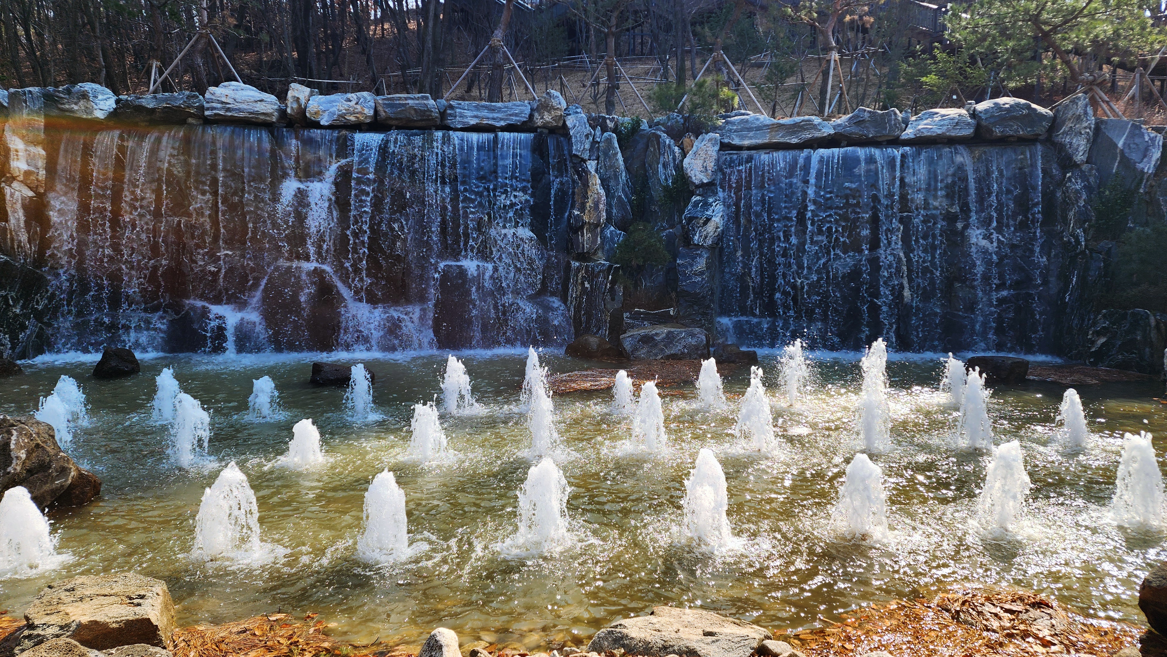 중앙공원에 들어섰더니 인공폭포를 시험 가동하고 있다. 중앙공원은 아직 정식 개장을 안 했다. 폭포에서 떨어진 물은 작은 계류를 따라 아래로 흘러내려간다. 졸졸 흐르는 물소리가 봄을 환영하는 인사로 들린다.
