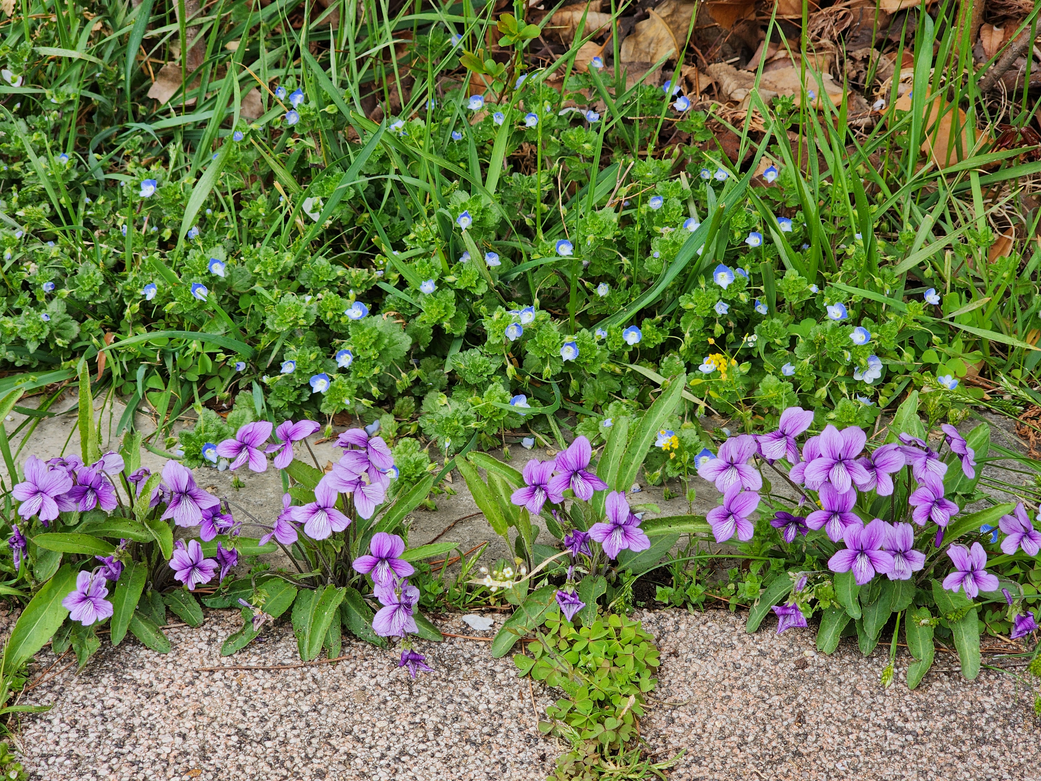 길섶에 있어 오갈 때마다 늘 만나는 이 제비꽃과 개불알풀꽃이 비를 만나 초롱초롱해졌다. 흔한 풀꽃이지만 색감으로 치면 둘째가라면 서러울 정도로 으뜸이다.