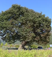 나무 주위에는 넓은 공터를 두고 밑에는 반원형의 평상을 깔아놓았다. 도로에 인접한 게 흠이긴 하지만 마을 주민들의 휴식 공간으로는 그만이다. 나무와 사람이 함께 어울려 살아가는 모습이 보기 좋다.