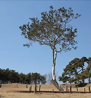 나무 높이는 35 m, 줄기 둘레는 9 m나 되는 거목이다. 오른쪽에 있는 나무는 300년 전부터 원 줄기에서 새로운 싹이 나와 지금과 같은 굵기로 되었다고 한다. 그러고 보니 원 줄기는 많이 상해서 수피 시술을 받은 상태다.