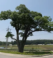 이 마을은 뒷산 지형에서 따와서 '궁동(弓洞)마을'로도 불린다. 앞으로는 너른 들판이 펼쳐져 있어 시원하다. 나무 수령은 200년 정도 되는데 마을 역사와 얼추 비슷하다. 나무 앞에는 돌 제단이 있는데 빈 막걸리 통이 놓여 있다. 한여름에 이런 나무 아래서 바둑 한 판 둔다면 신선이 따로 없겠다.