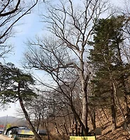 먼저, 성당에 들어서면서 입구에 있는 느티나무다. 수령이 250년으로 높이 21m, 둘레 3.9m다. 노쇠한 탓에 치료중이다.