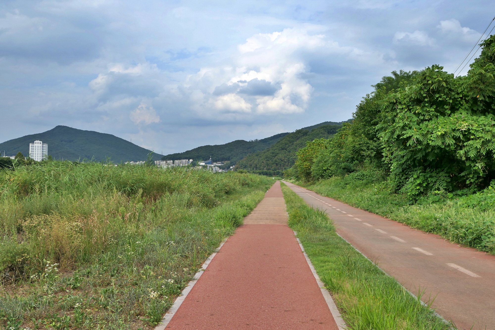그렇더라도 아직 여름인지라 해가 중천인 경안천 길에는 사람이 드물다. 타박타박 혼자서 걷는다. 사람이 없으면 마스크를 안 써도 되어 좋다.