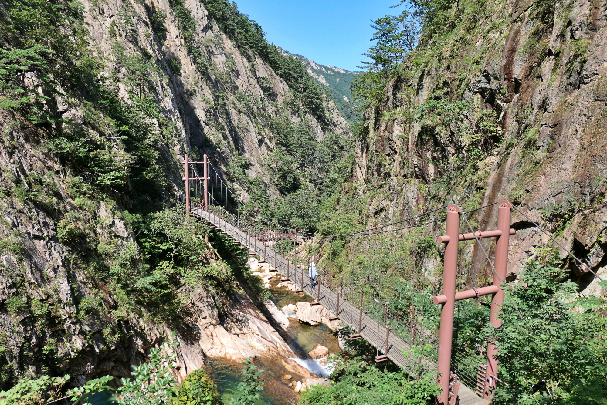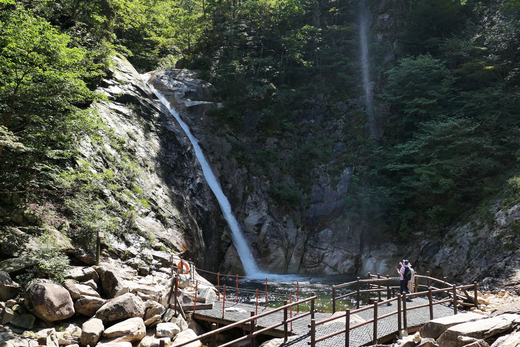 설악동에서 비룡폭포까지는 약 2km다. 왕복 두 시간 정도 잡으면 남녀노소 누구나 힘들지 않게 다녀올 수 있는 길이다. 아내의 무릎이 성치 않아 우리도 여기까지만 목표로 하고 왔다. 그런데 토왕성폭포 전망대가 400m만 가면 된다는 안내판에 혹해 마음을 바꿨다. 아내는 비룡폭포에 남아 있고, 나만 다녀오기로 했다. 언제 다시 와 보랴, 하는 공통된 생각으로 아내도 권했다. 마침 비룡폭포 계곡에는 설악의 맑은 물소리를 들으며 편히 쉴 수 있는 바위가 있었다.