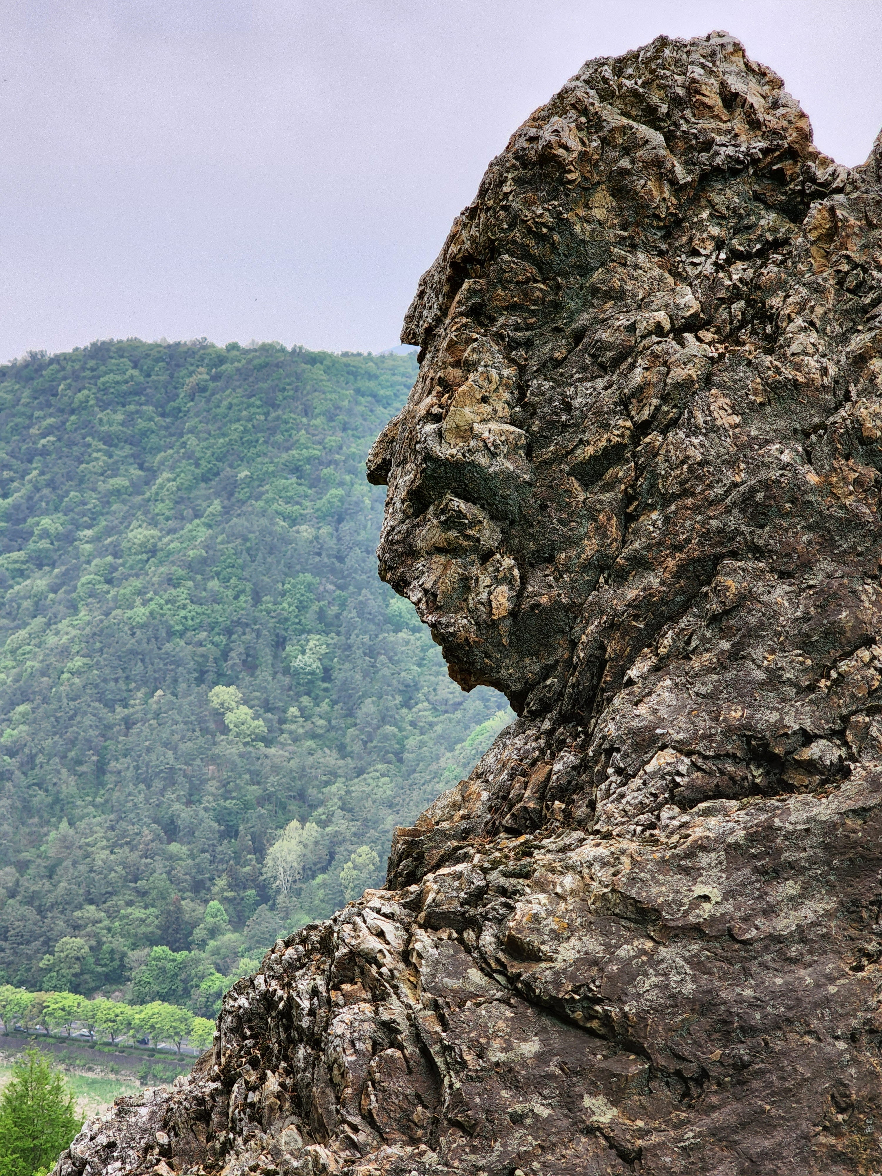 이 바위를 다른 각도에서 보면 노승(老僧)의 옆모습을 하고 있다.