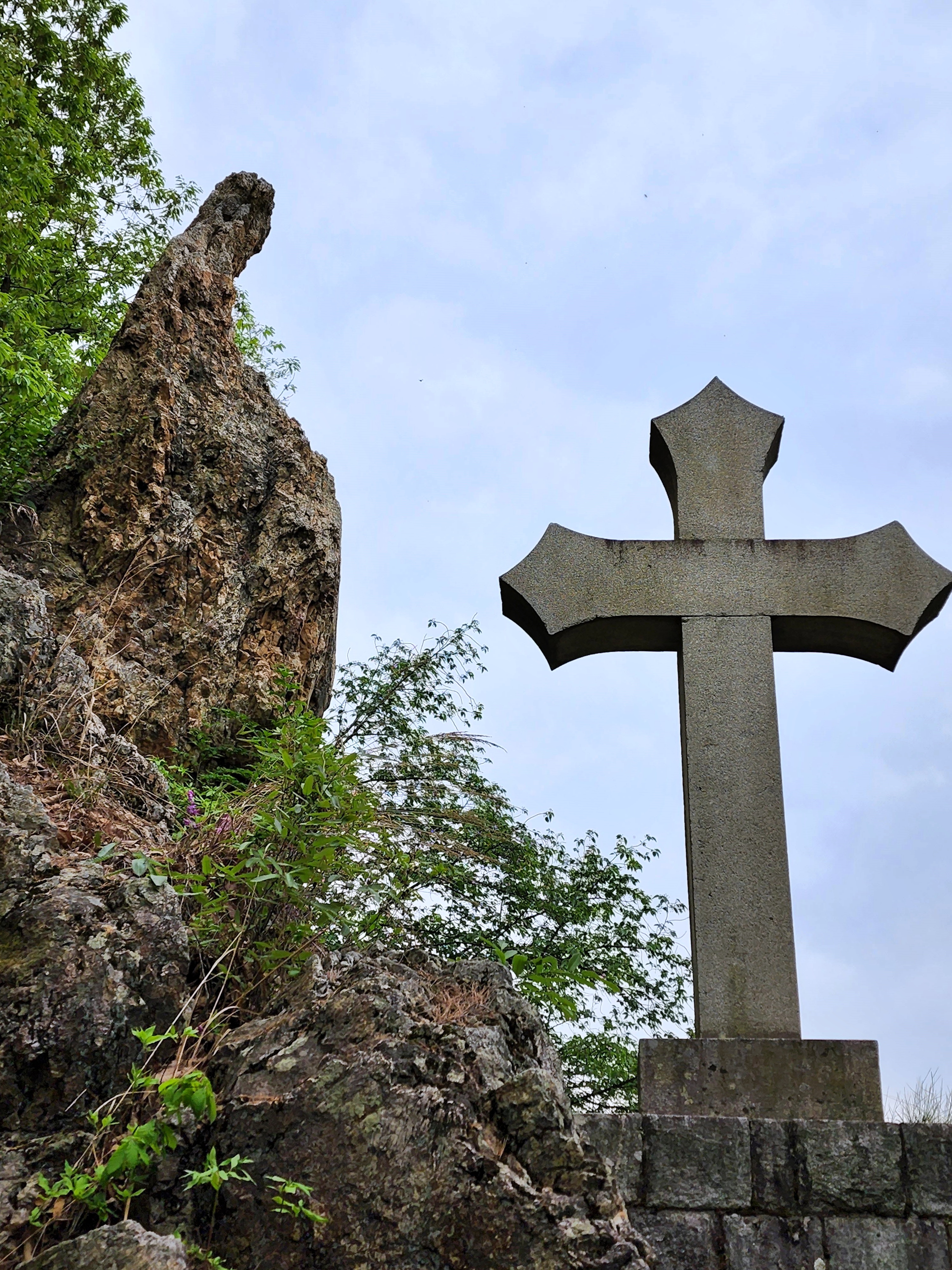 순교자 가족묘의 십자가 옆에 바위 형상이 기도하는 성모마리아를 닮았다.