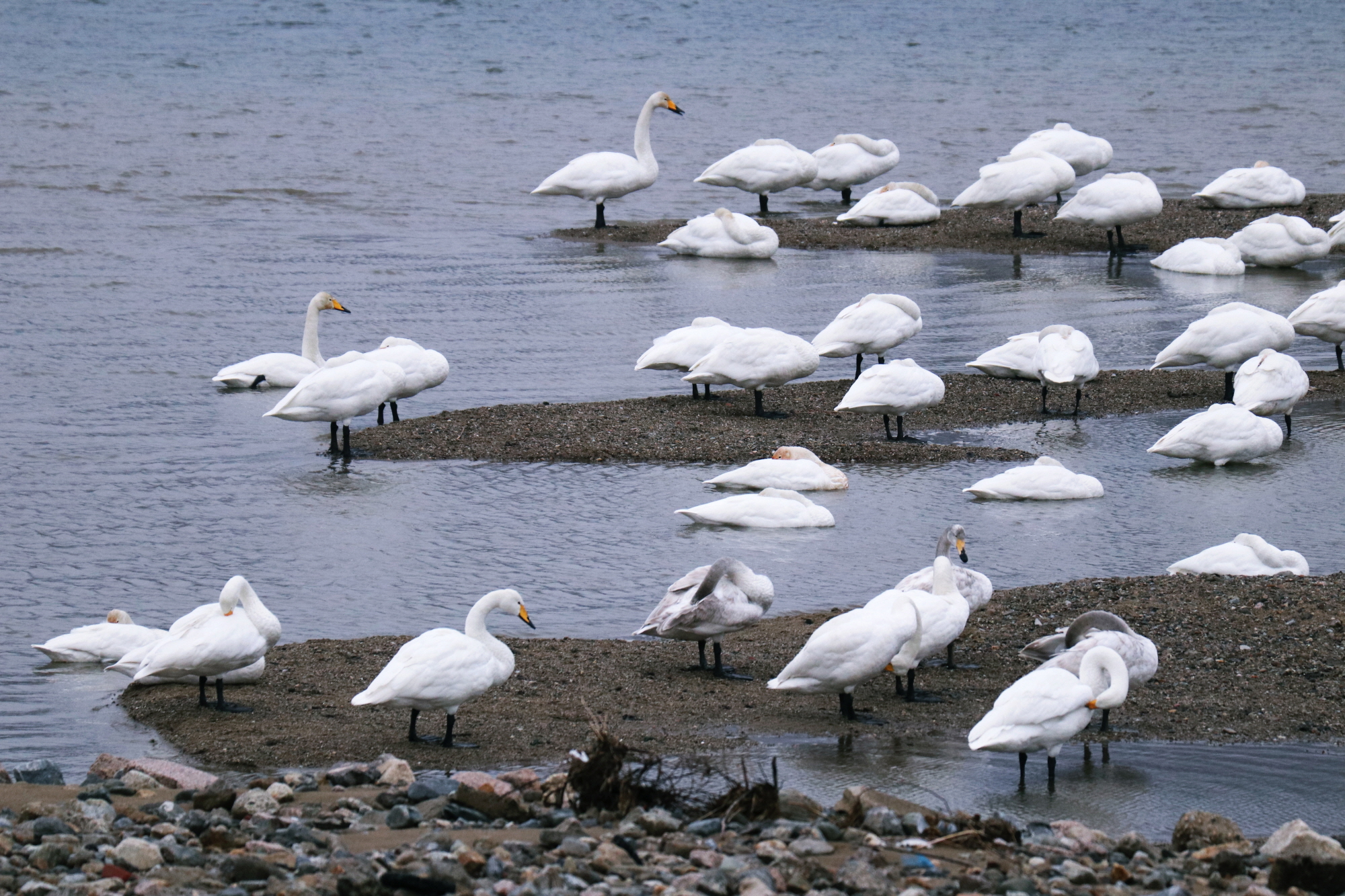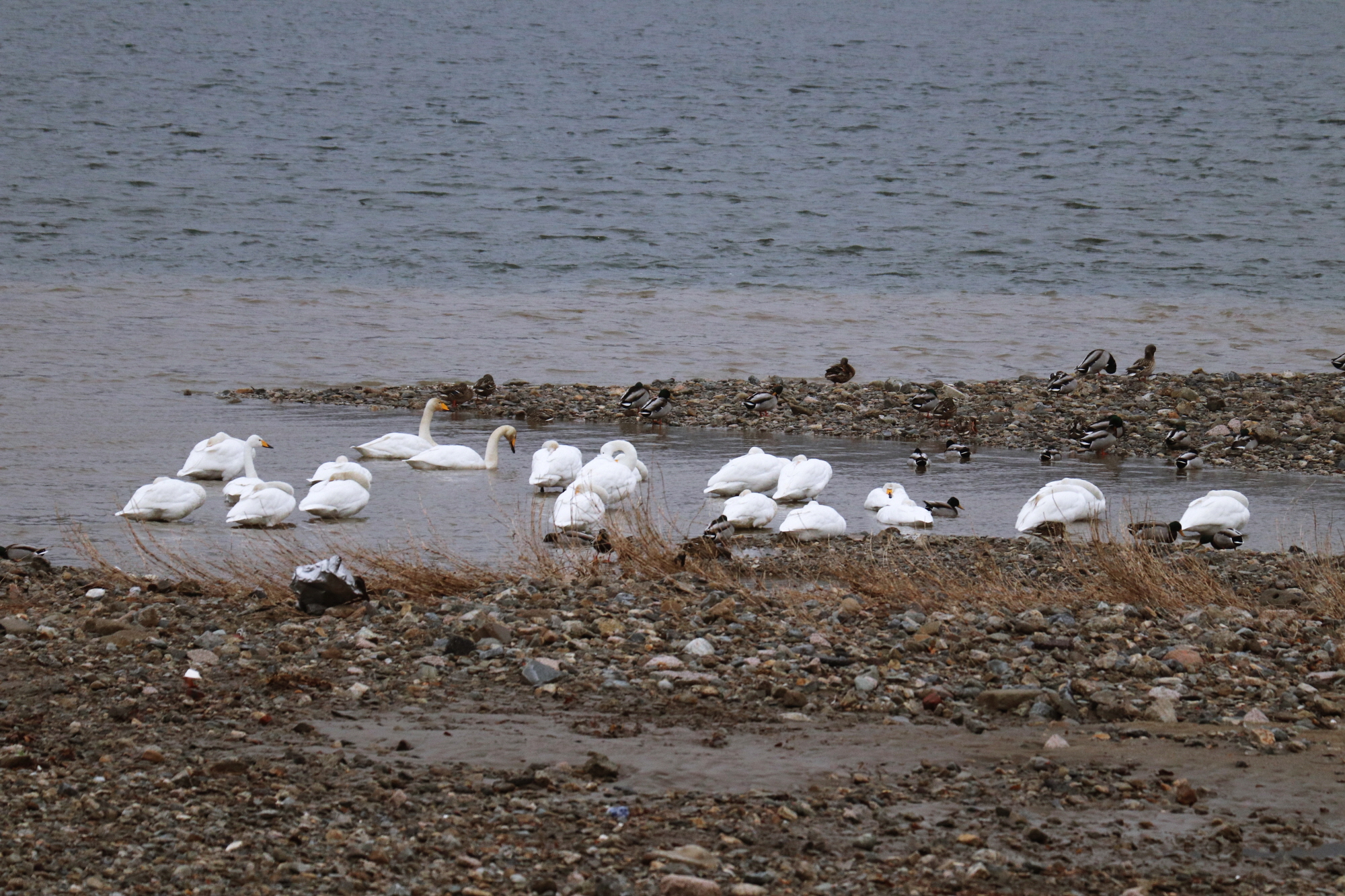식당으로 가는 길에 먼저 팔당 한강변에 나가 보았다. 고니를 보기 위해서였다. 고니는 70마리 정도가 있었는데 두 무리로 나누어 모래톱에서 쉬고 있었다. 스산한 날씨 탓인지 고니도 움츠러든 느낌이었다. 영상의 기온이지만 강변이라 바람 불고 싸늘해서 오래 있지는 못했다.