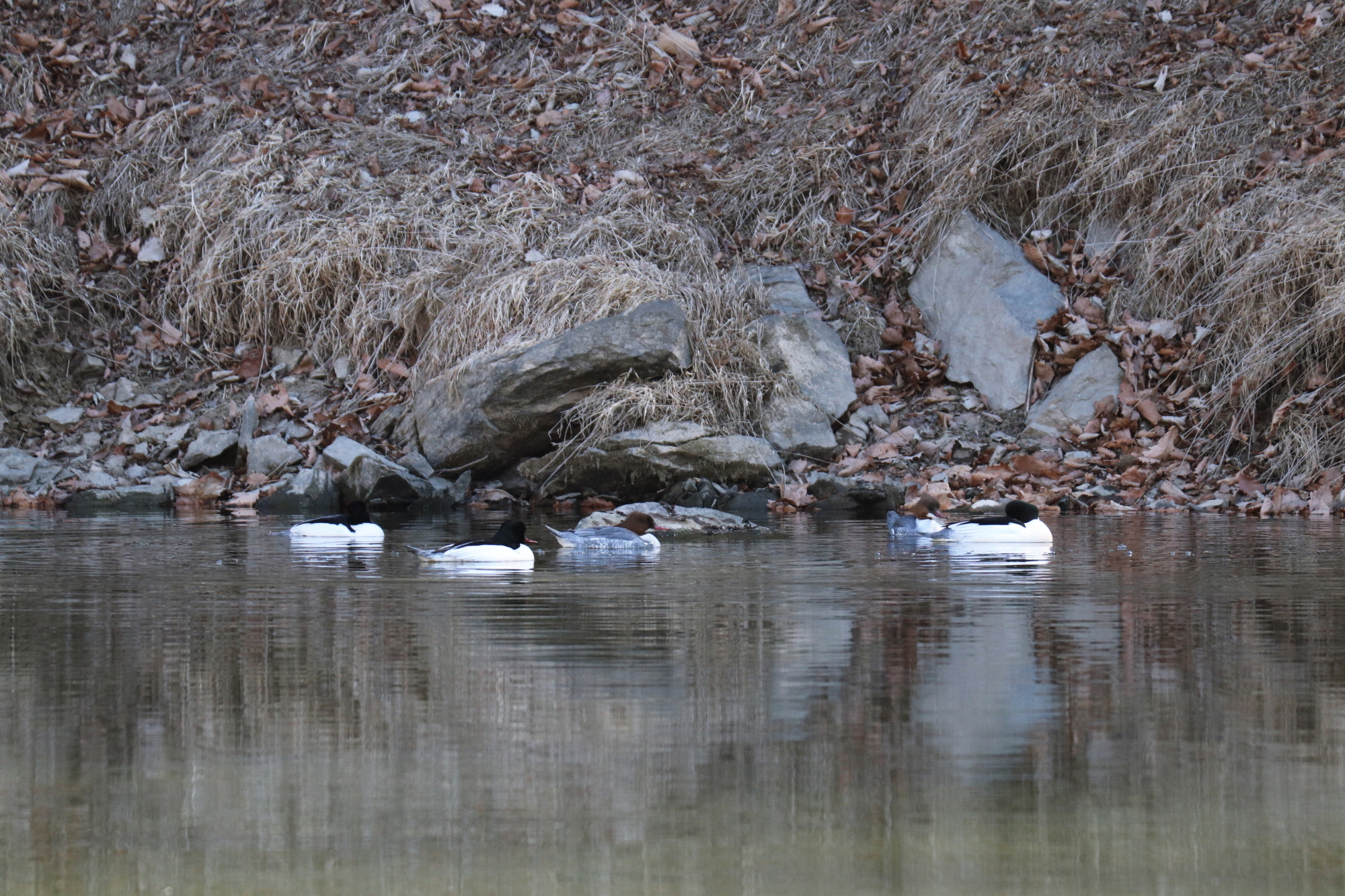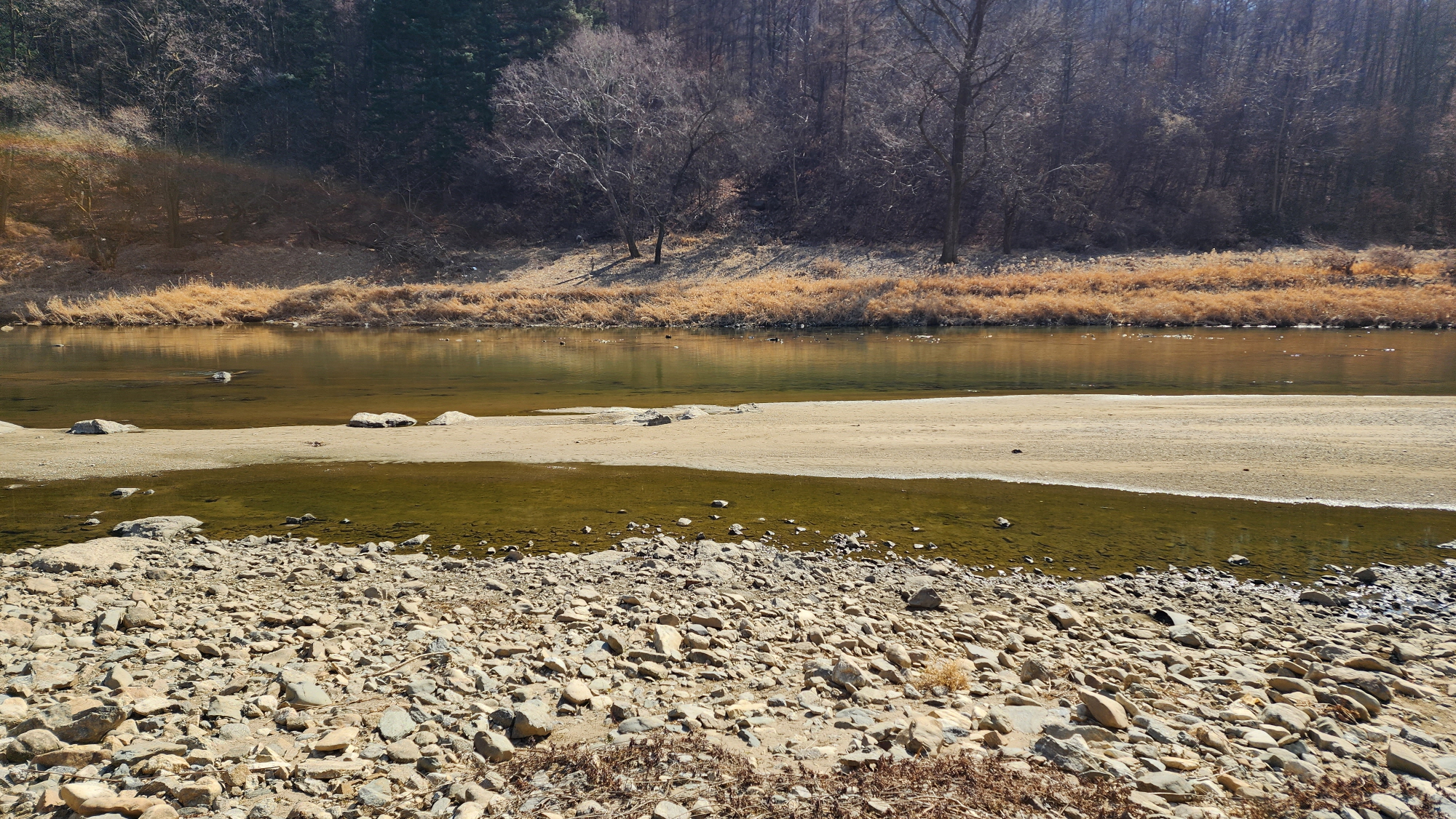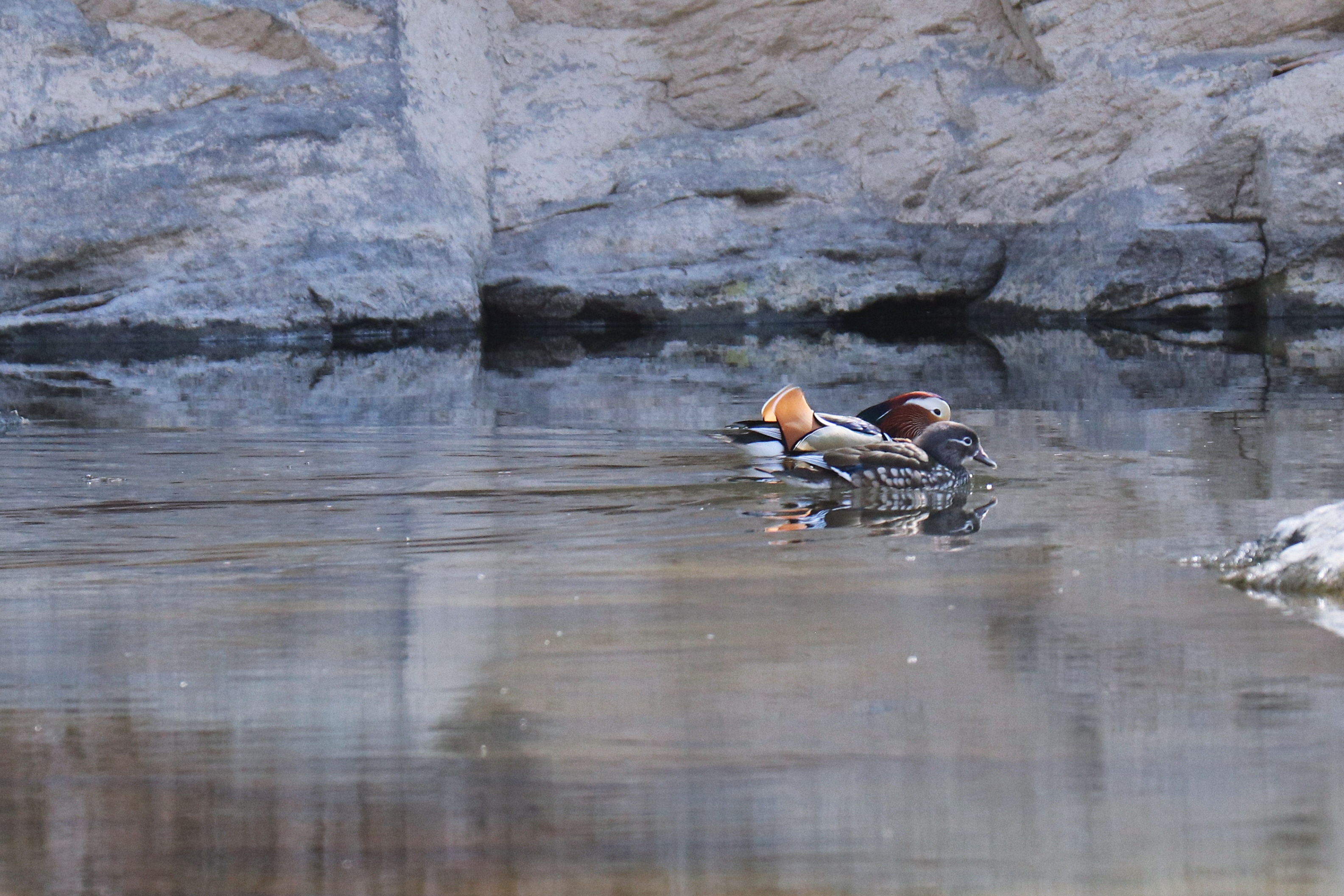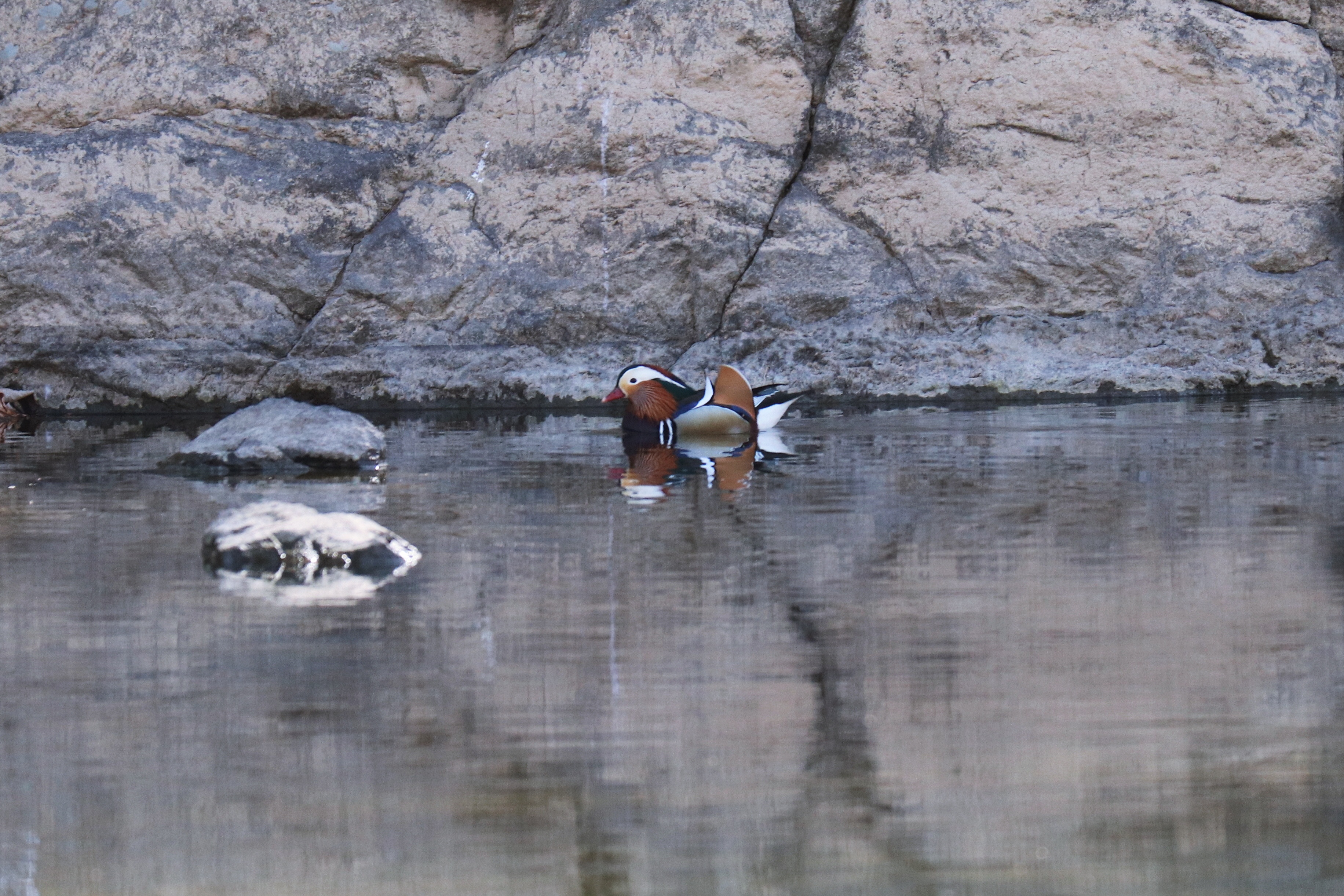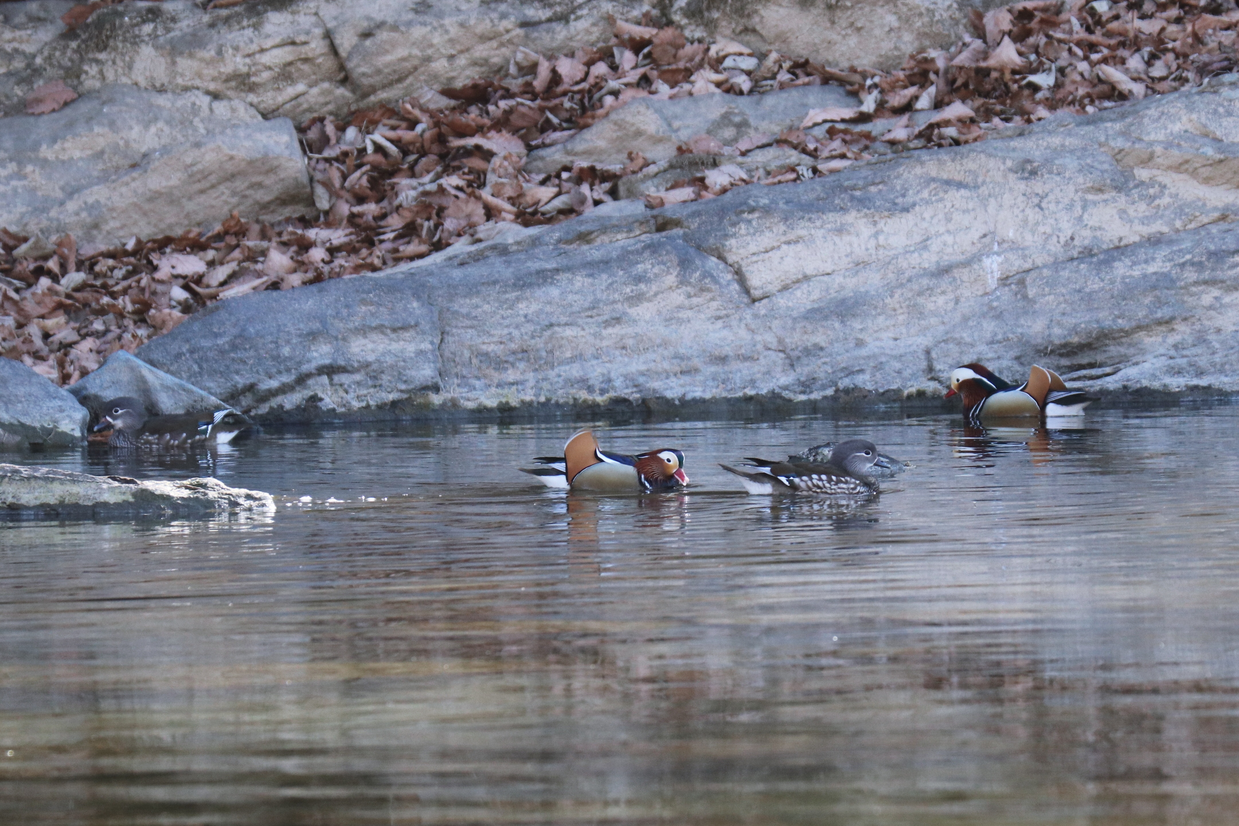 경안천에서 원앙이 사는 곳은 따로 있다. 산책로에서 멀리 떨어진 산 아래 응달진 곳이다. 맨눈으로는 원앙인지 잘 구분되지 않을 정도로 멀리 떨어져 있다. 다른 오리류가 없는 한적한 곳이다. 원앙은 저희 가족들끼리 독립적인 생활을 좋아하는 것 같다.
