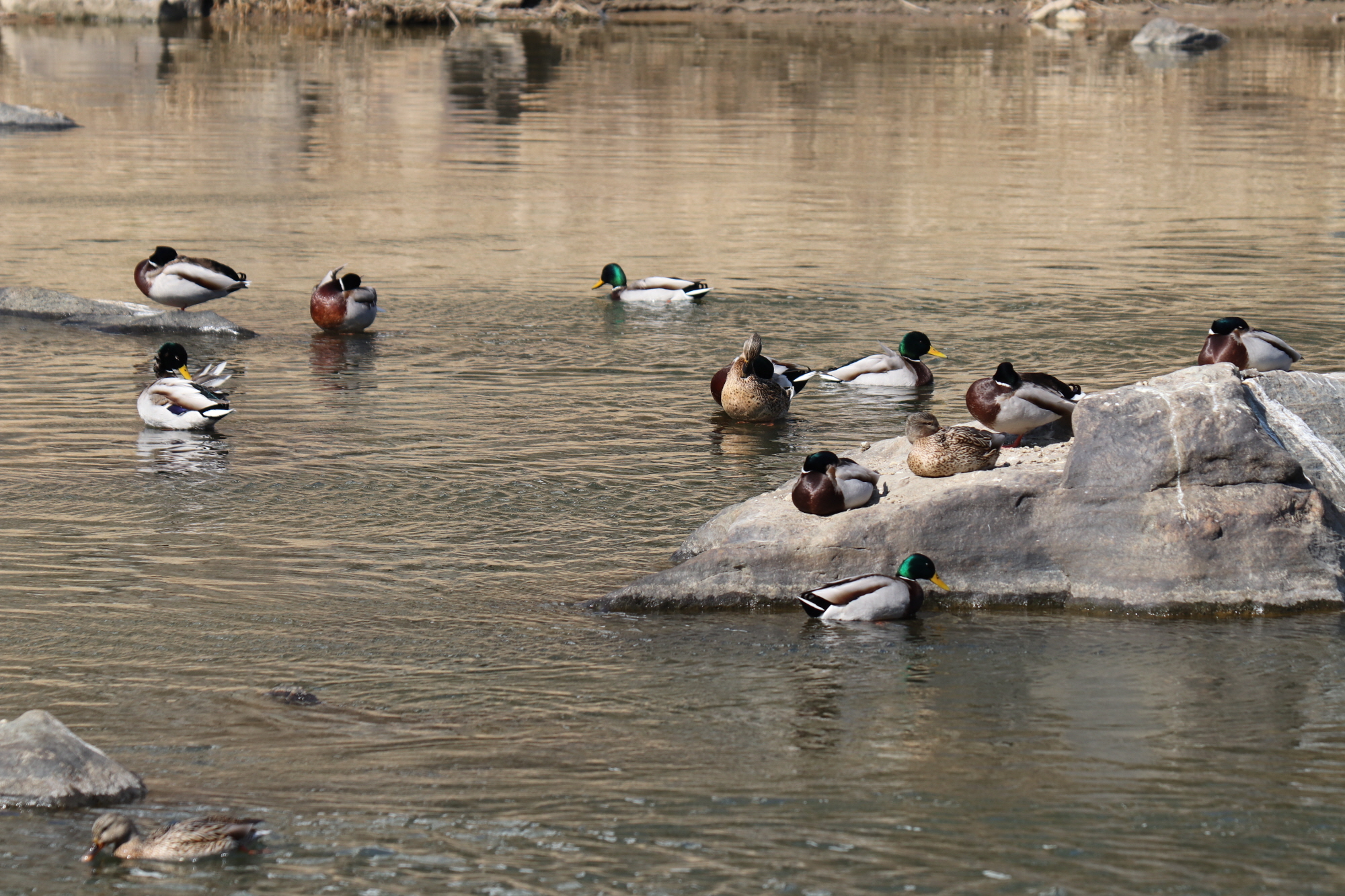 제일 분주한 것은 청둥오리다. 흰뺨검둥오리와 함께 사람이 옆에 있어도 그다지 의식하지 않는다.