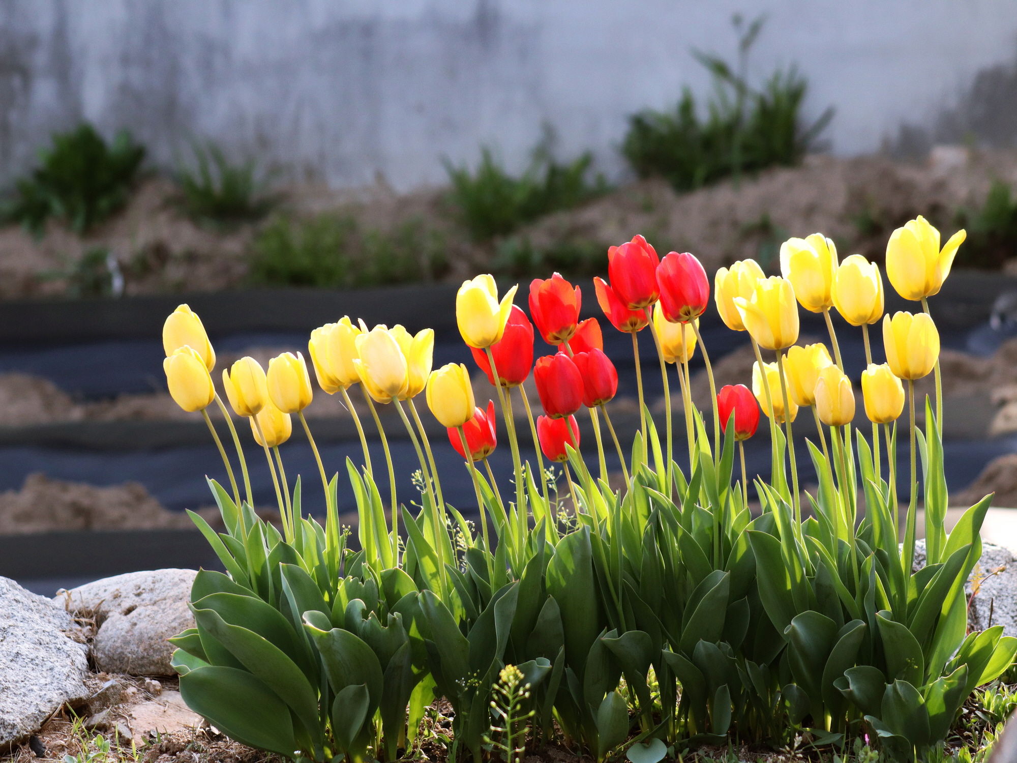 마당 한 켠에 어머니가 심은 튤립이 환하게 폈다.