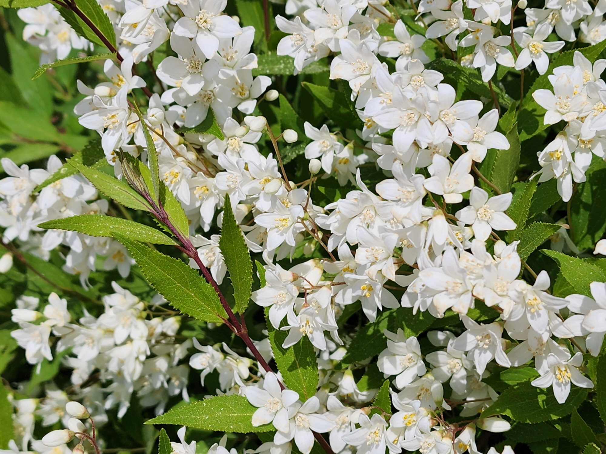 수원 자동차등록소 화단에서 만난 꽃이다. 벤치에 앉아 쉬고 있는데 꽃 무더기를 이루며 하얗게 피어 있는 꽃이 눈에 들어왔다. 이름을 특정할 수 없었는데 네이버 렌즈로 검색해 보니 애기말발도리가 맞는 듯했다.