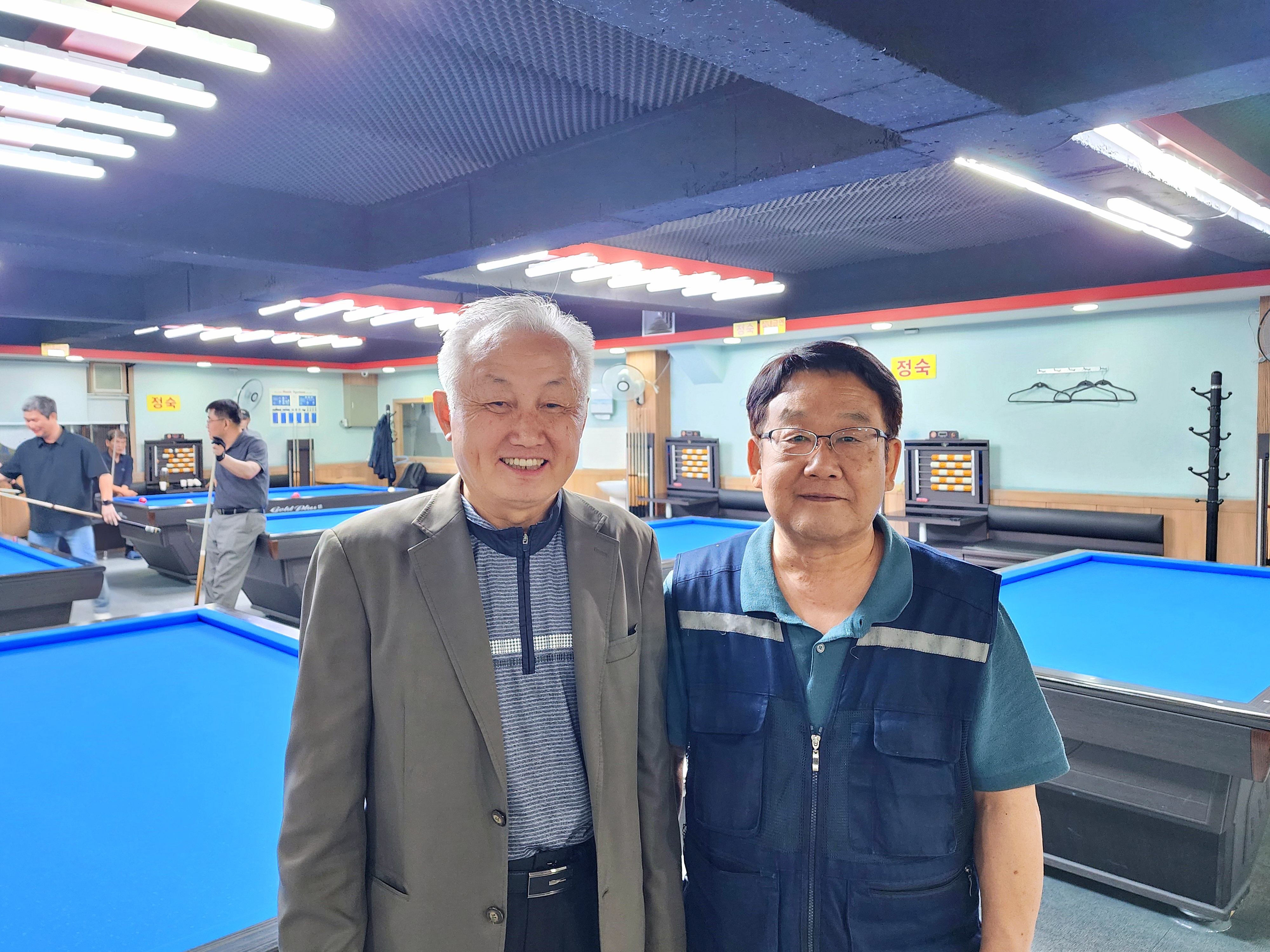 K와 만나면 바둑과 당구가 세트로 따라붙는다. 어릴 때 하던 돌 놀이와 공 놀이의 연장선이다. 두 주만에 큐대를 잡아선지 감각을 찾지 못해 애먹었다. 계산을 하고 나서 당구장 사장님과 재회한 기념으로 사진을 찍자고 했다. 당구장을 청결하게 관리하는 측면에서는 업계 최고인 사장님이다.