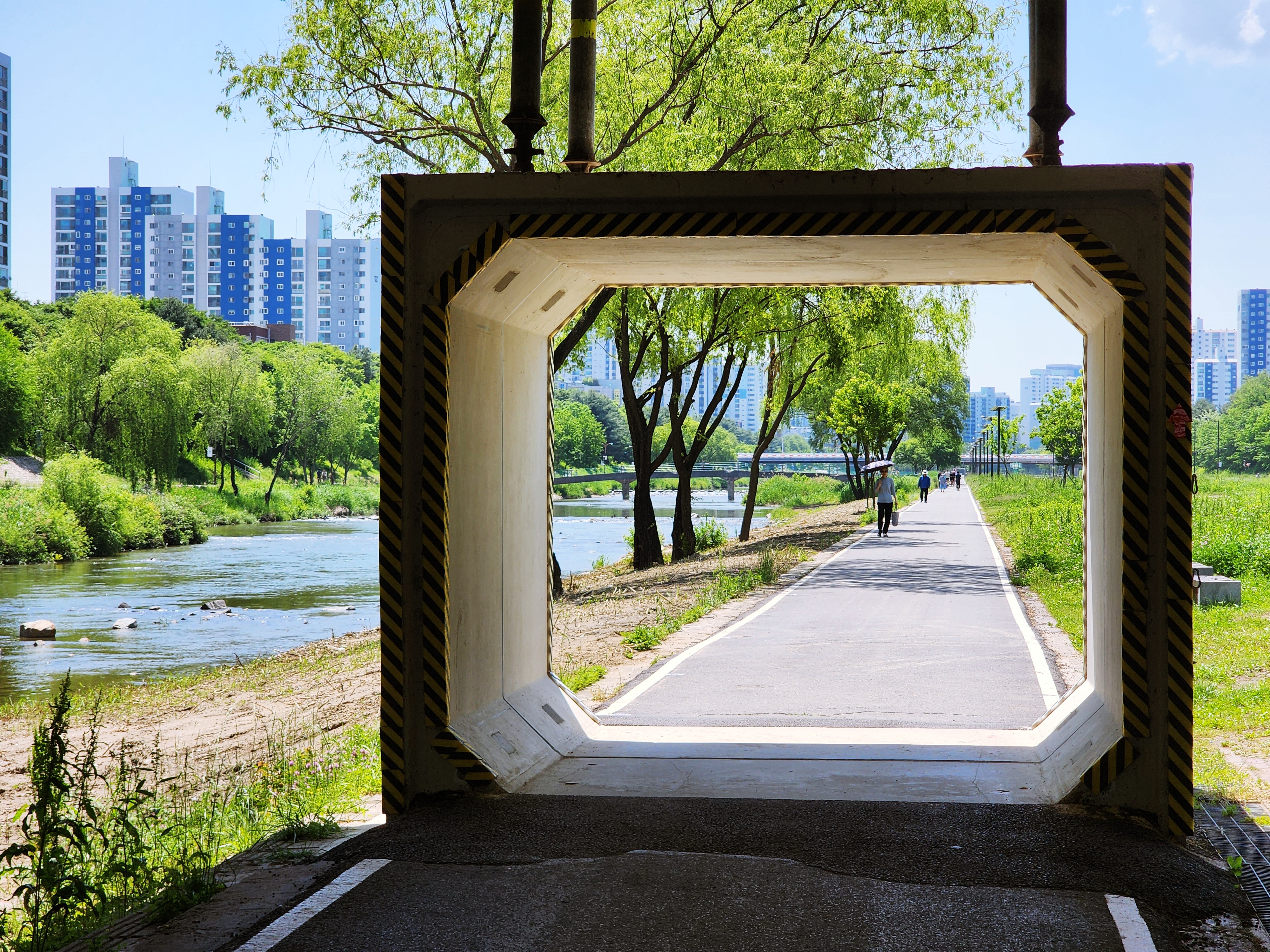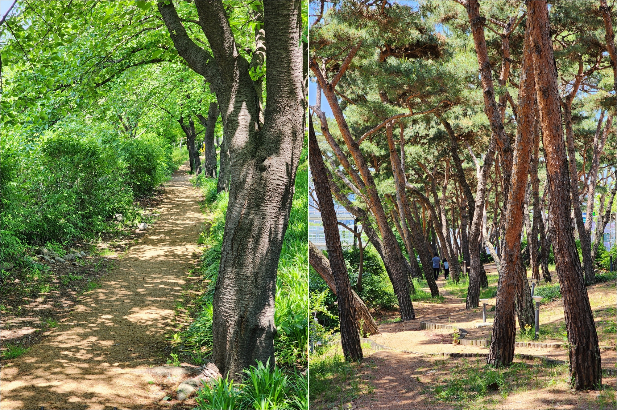 반팔 차림의 사람들이 자주 눈에 띄었다. 천변을 따라 벚나무와 소나무가 도열한 아기자기한 산책로도 있다.