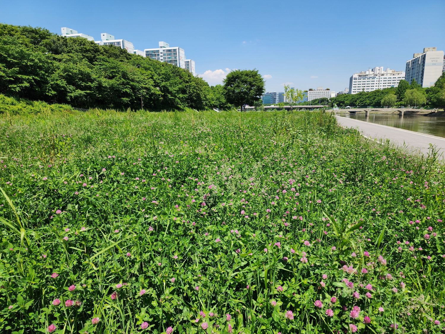 요사이 탄천 둔치에는 붉은토끼풀(red clover) 꽃이 지천으로 피어 있다. 한참을 걸어도 끊어질 줄 모르는 붉은토끼풀 꽃밭이다. 우리가 클 때는 거의 흰색의 토끼풀이었는데 이제는 붉은토끼풀이 더 많이 눈에 띈다. 붉은토끼풀은 토끼풀에 비해 키나 꽃이 더 크다. 이만한 생장력이면 목초지의 사료용 식물로는 최상일 것 같다.