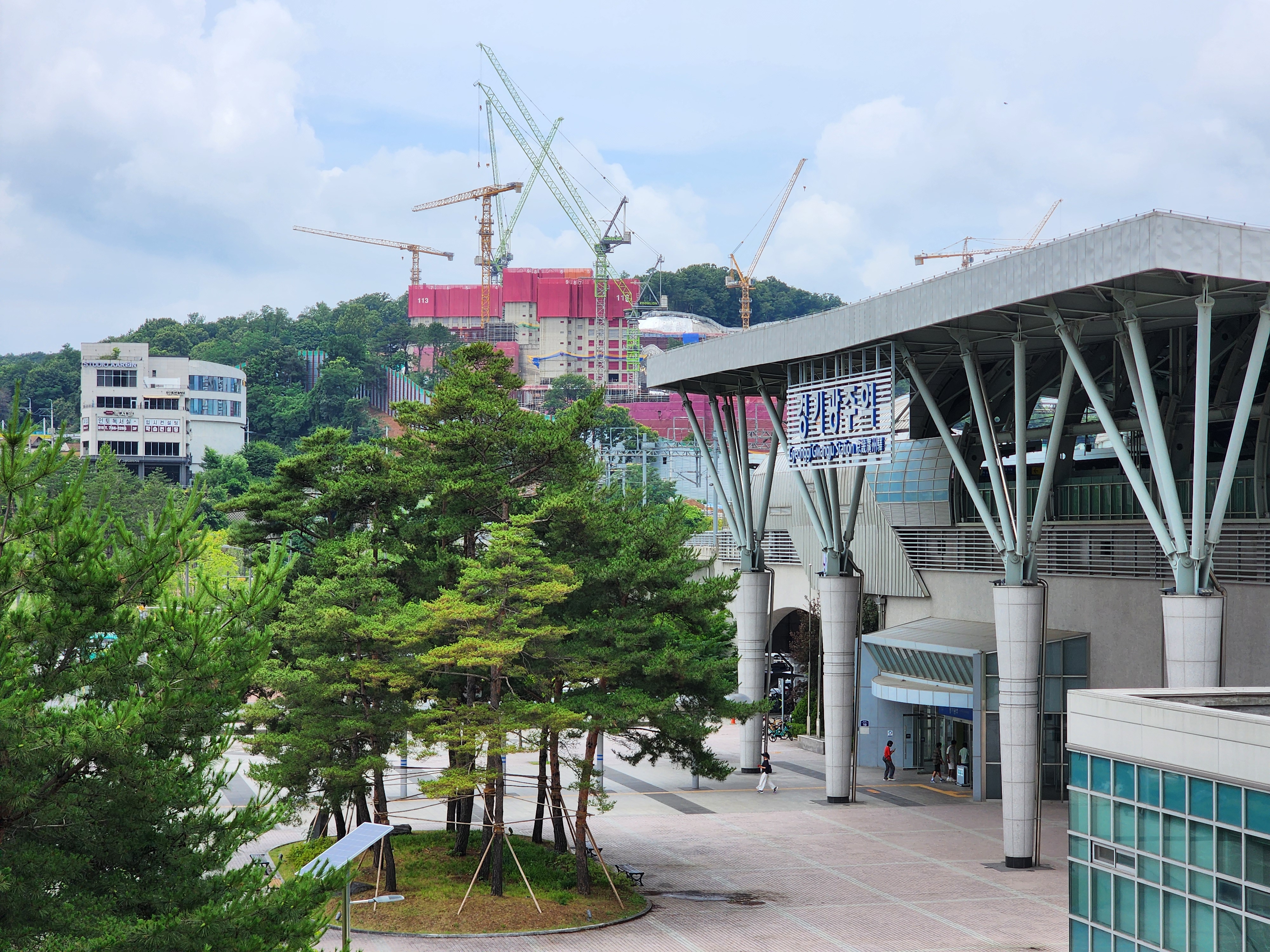 내린 비로 경안천은 황토색이 되었다. 물은 하수 냄새가 섞인 물비린내가 진했다. 길은 군데군데 질척거렸다. 천 건너편에서는 종합운동장 공사가 한창이다.