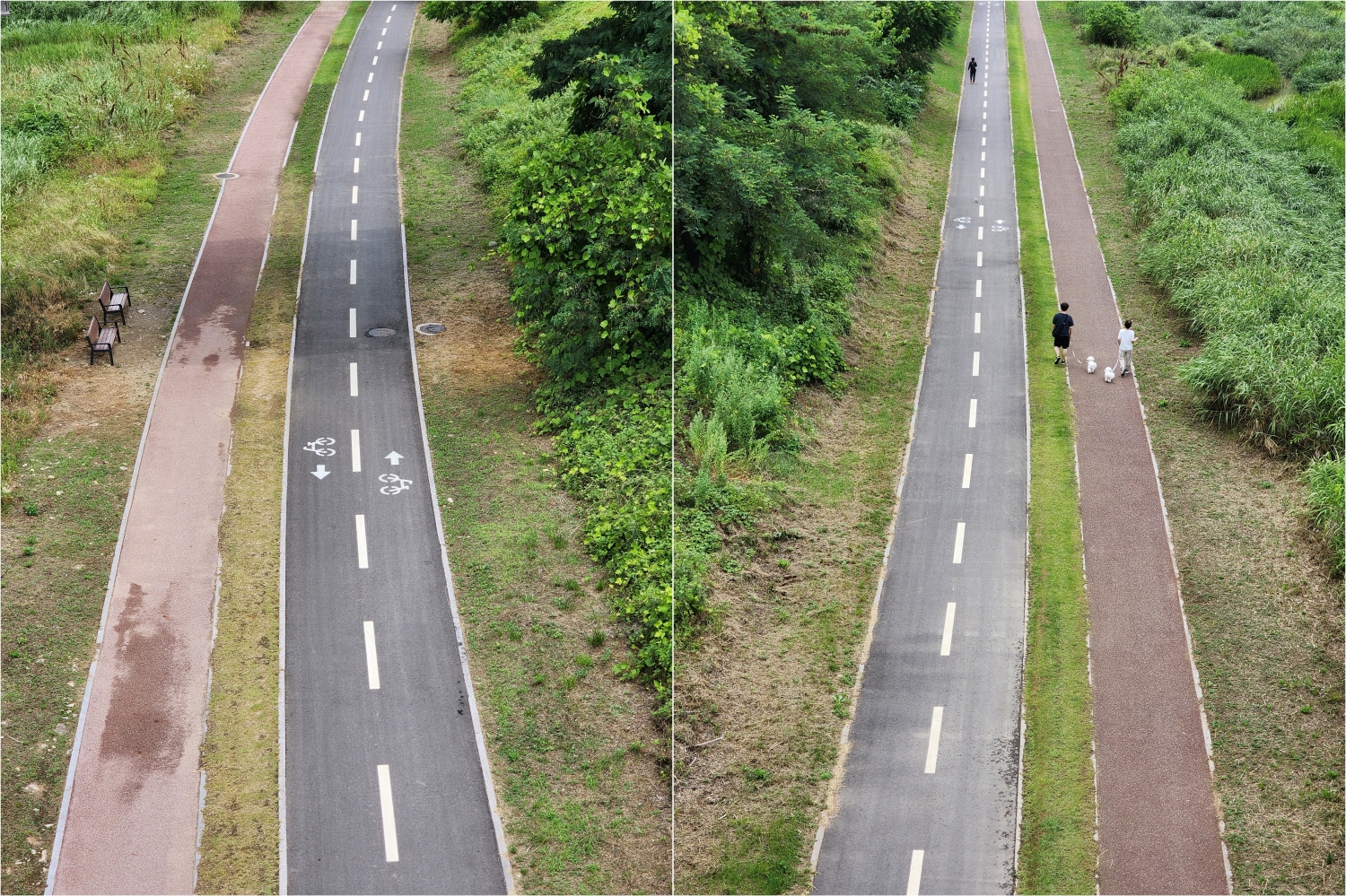 초여름의 불더위를 몰아내는 장마가 찾아왔다. 한때는 기온이 35℃까지 치솟더니 비가 내리면서 기세가 한풀 꺾였다. 땡볕에서는 밖에 나가고 싶지 않았는데 오늘은 구름이 햇볕을 가려줘서 경안천 걷기에 나섰다. 배낭 안에는 식수, 참외, 떡을 챙겼다. 반바지를 입으니 상쾌했다.