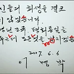 이명박 후보가 지난 6월 6일에 국립현충원 방명록에 남긴 글이 화제다. 짧은 문장에서 잘못된 부분이 다섯 군데나 될 정도로 맞춤법과 띄어쓰기가 엉망이다.띄어쓰기는 그렇다 치고, 아직도 '-읍니다'와 '-습니다'를 혼동하는 한글에 대한 무감각이 한심하다. 이 후보는 영어 교육을 부르짖기 전에 자신의 한글에 대한 애정부터 점검해 볼 것을 권하고 싶다. 이런 것은 실력을 떠나 관심의 애정의 문제다. 국민들 다수의 지지를 받는 대통령 후보의국어에 대한 관심과 이해가이 정도밖에 되지 않는다는 사실이 슬프다. 어제 발표된 여론조사를 보면국민들의 60% 정도가 도덕성 보다는 잘 살게 해 줄 대통령을 뽑겠다고했다. 먹고 사는 문제가 중요하긴 하지만 너무나 그런 방향으로 흐르는 국민 의식에도 문제 제기를 하고 싶다. 경..